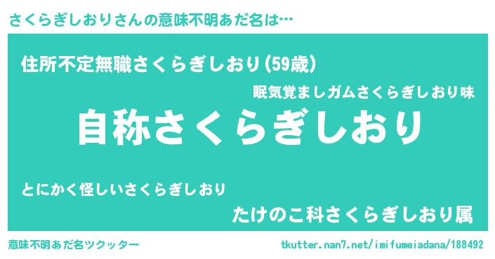 | 肩書あだ名 | 『さくらぎしおり閣下』 |
