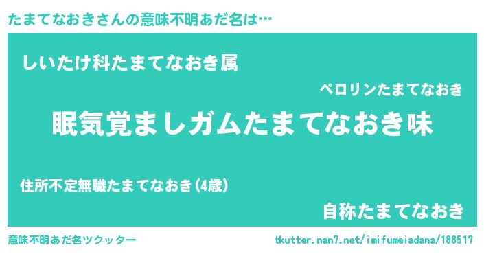 | ヒーロー風カッコイイあだ名 | 『慈愛の使者たまてなおき』 |