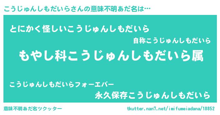 | 料理風あだ名 | 『こうじゅんしもだいらとほうれんそうの和風グラタン』 |