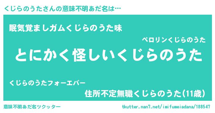 | ポケモン風あだ名 | 『ヒクジラノウタ』『クックウザ』 |