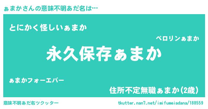 | 男性向けラノベタイトル風あだ名 | 『ぁまかという概念が存在しない退屈な世界 』 |