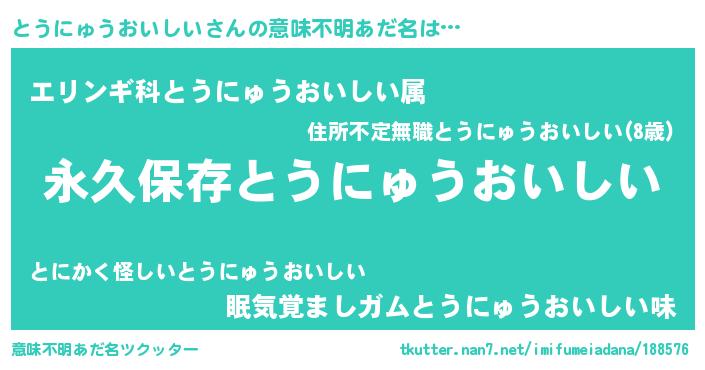 | 胡散臭い通販商品みたいなあだ名 | 『絶対に幸福をもたらす健康食品…その名も「とうにゅうおいしい」』 |
