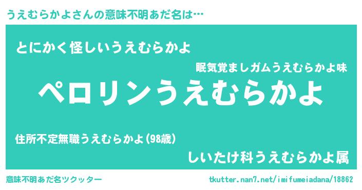 | 胡散臭い通販商品みたいなあだ名 | 『必ず成功する水晶球…その名も「うえむらかよ」』 |