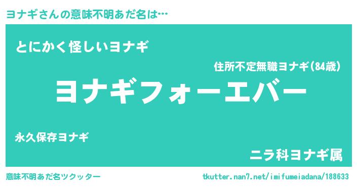 | ファンタジー風あだ名 | 『エターナルヨナギー』『ヴァルヨナーナ』 |