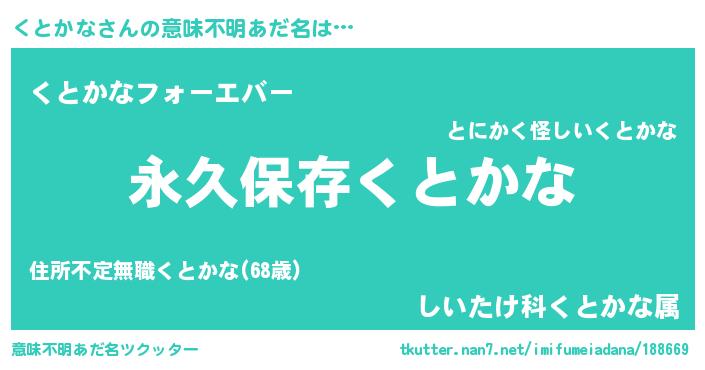 | 伝説のあだ名 | 『古より伝わる暗殺者くとかな』 |