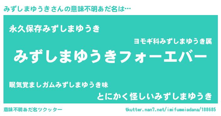 | ファンタジー風あだ名 | 『エターナルミズシマユウキー』 |