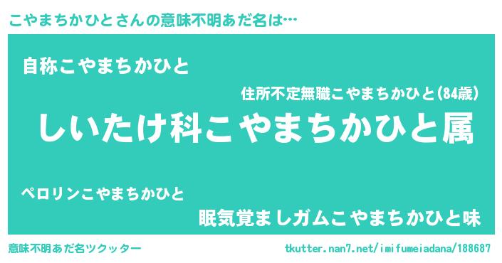| 男性向けラノベタイトル風あだ名 | 『コヤマチカヒトスレイヤー』 |