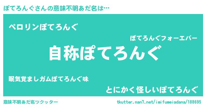 | 男性向けラノベタイトル風あだ名 | 『ぽてろんぐに滅ぼされるだけの簡単なお仕事です』 |