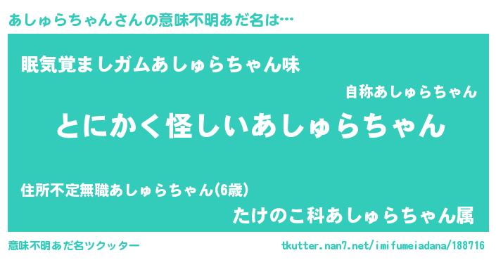 | 料理風あだ名 | 『ポテトとあしゅらちゃんのキッシュ☆』 |