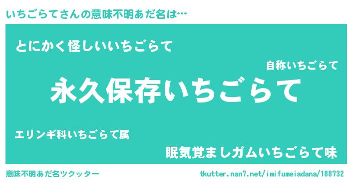 | ヘコむあだ名 | 『いちごらて(小並感)』『いちぷりん』 |