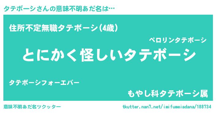 | 欧米人風あだ名 | 『ウサインタテボーシ』 |