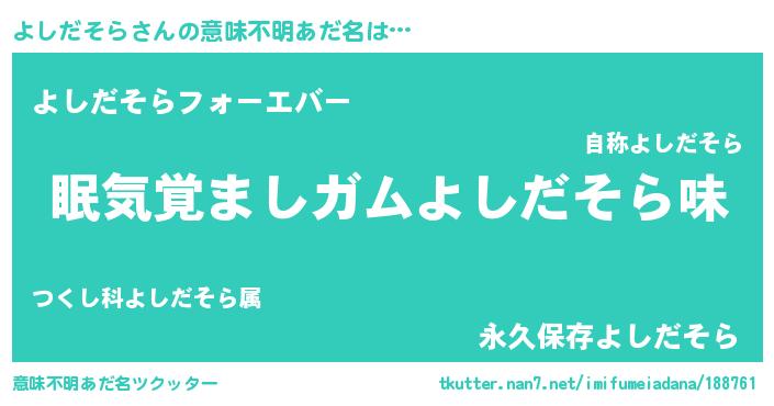 | ヘコむあだ名 | 『なまこ酢』『よしだそら(笑)』 |