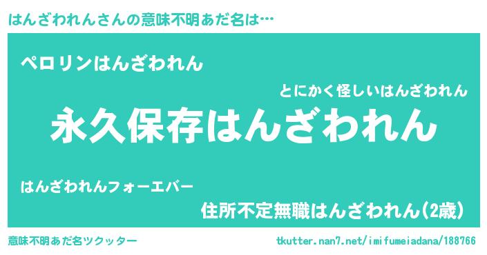 | 男性向けラノベタイトル風あだ名 | 『はんざわれんという概念が存在しない退屈な世界 』 |
