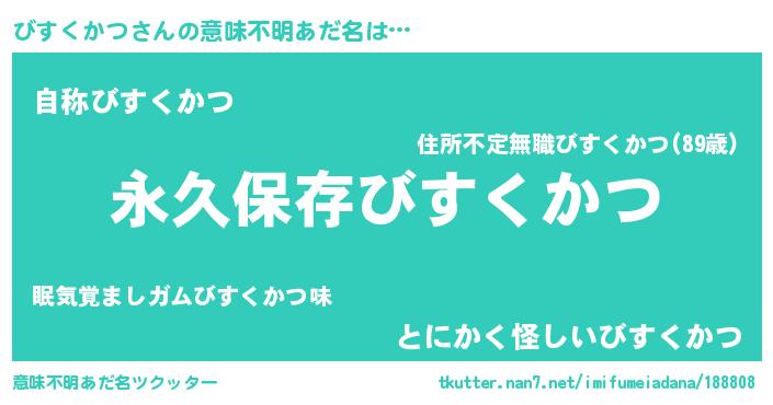 | ヘコむあだ名 | 『びすくかつ(笑)』『びすお』『牛乳』 |