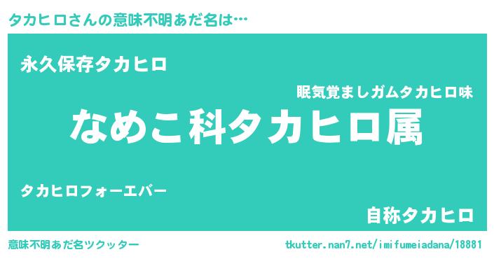 | ヒーロー風カッコイイあだ名 | 『ネオタカヒロ』『サイバー戦士タカヒロ』 |
