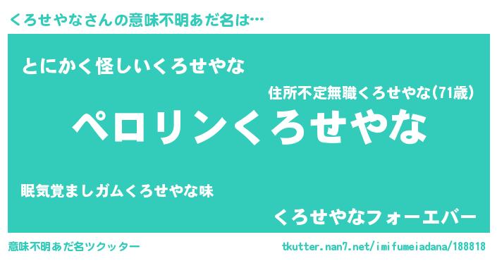 | 胡散臭い通販商品みたいなあだ名 | 『モテモテ間違いなしブレスレット…その名も「くろせやな」』 |