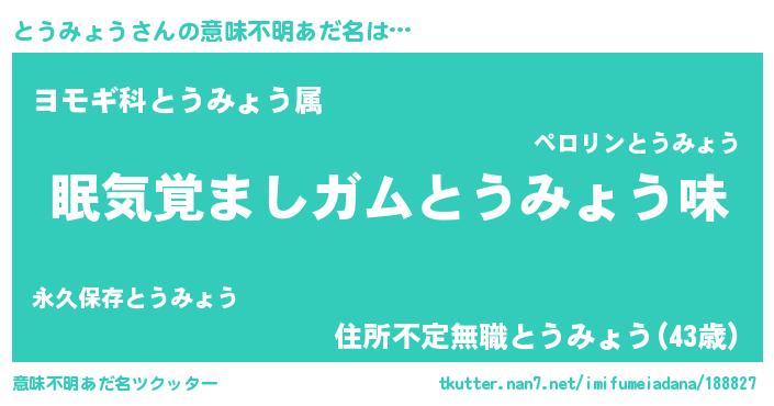 | ヘコむあだ名 | 『とうふぇ~』『とうみょう(小並感)』 |