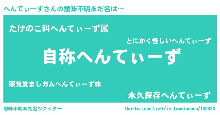 | 女子向けラノベタイトル風あだ名 | 『へんてぃーずなんてお断りですっ。』 |
