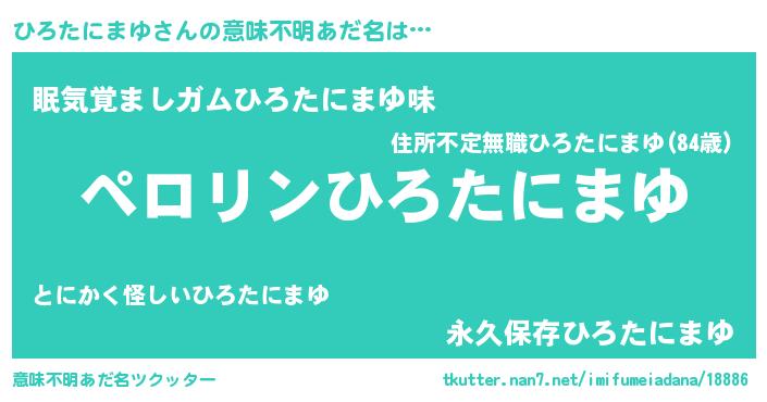| 男性向けラノベタイトル風あだ名 | 『ひろたにまゆに滅ぼされるだけの簡単なお仕事です』 |