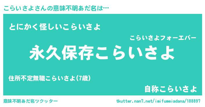 | ヘコむあだ名 | 『こらいさよ(苦笑)』『こらを』 |