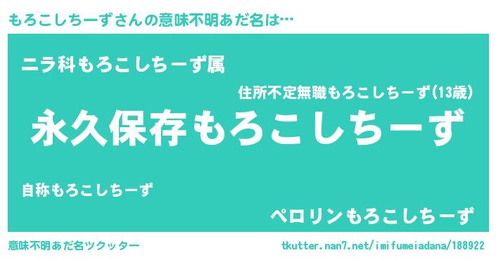 | 男性向けラノベタイトル風あだ名 | 『もろこしちーずという概念が存在しない退屈な世界 』 |