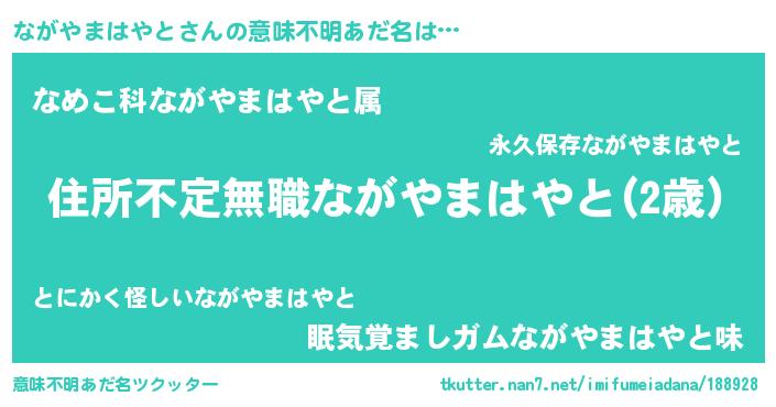 | 胡散臭い通販商品みたいなあだ名 | 『あなたにだけ特別に提供する100年もののヴィンテージワイン…その名も「ながやまはやと」』 |
