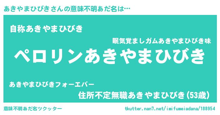 | 胡散臭い通販商品みたいなあだ名 | 『必ず成功するブレスレット…その名も「あきやまひびき」』 |