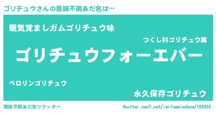 | ファンタジー風あだ名 | 『エターナルゴリチュウー』 |