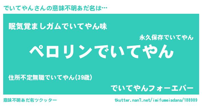 | 胡散臭い通販商品みたいなあだ名 | 『必ず成功するブレスレット…その名も「でいてやん」』 |