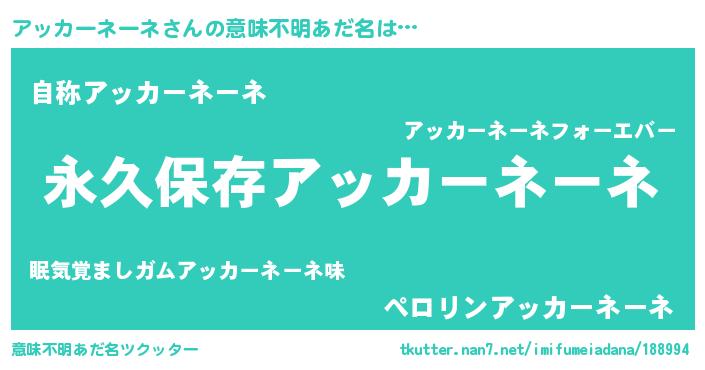 | ヒーロー風カッコイイあだ名 | 『ネオアッカーネーネ』 |