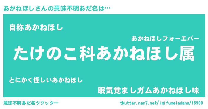 | 男性向けラノベタイトル風あだ名 | 『転生したらあかねほしだった件』 |