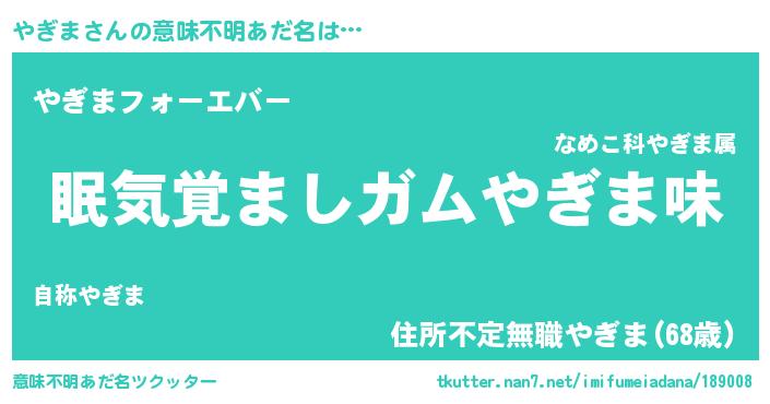 | ポケモン風あだ名 | 『ヤックウザ』『ヤギマダネ』 |