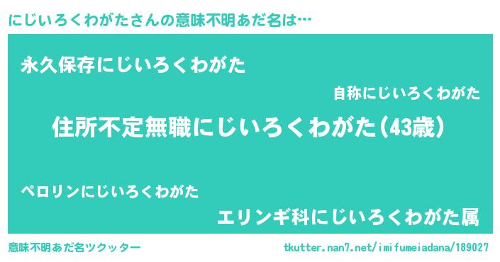 | ヘコむあだ名 | 『にじいろくわがた(笑)』『にじにー』 |