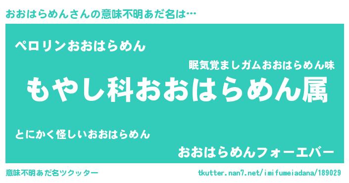 | 欧米人風あだ名 | 『トリンドルおおはらめん』 |