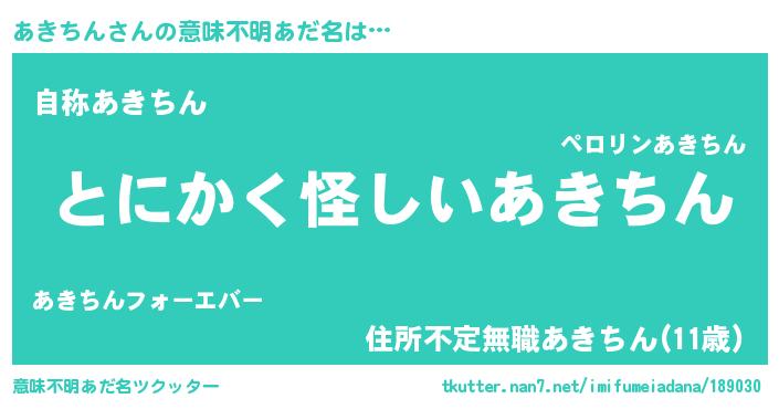 | ヒーロー風カッコイイあだ名 | 『銀牙騎士アキ』『究極戦士アキチン』 |
