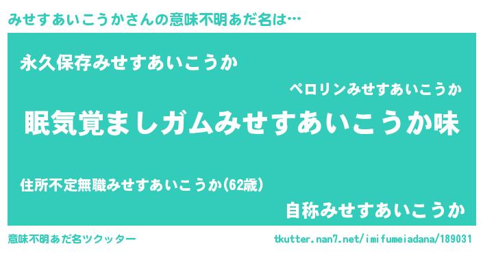 | 欧米人風あだ名 | 『ダニエルみせすあいこうか』 |