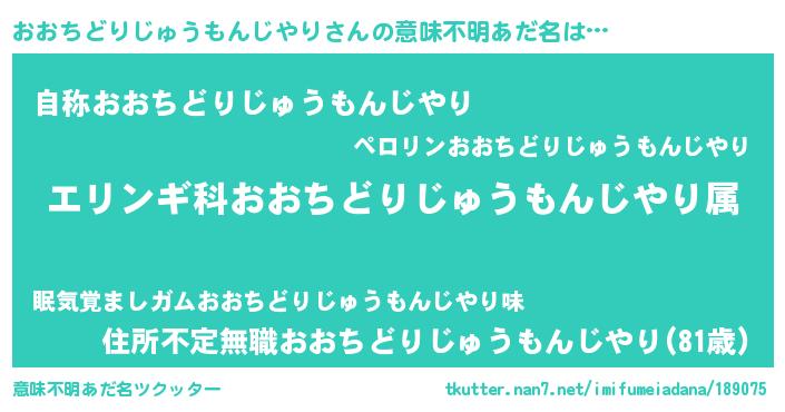 | 料理風あだ名 | 『おおちどりじゅうもんじやりごはん』 |