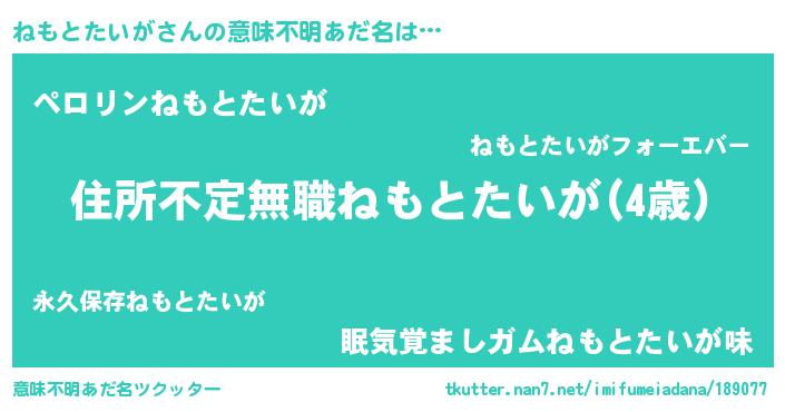 | ヘコむあだ名 | 『ねもにー』『豆乳』『ねもぷりん』 |