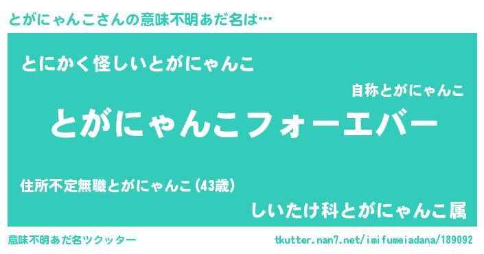 | ポケモン風あだ名 | 『トガニダネ』『ヒトガニャンコ』 |