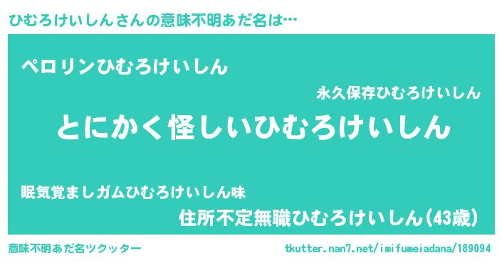 | ポケモン風あだ名 | 『ヒヒムロケイシン』『ヒムチュウ』 |