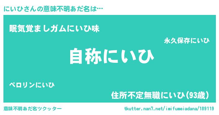 | 欧米人風あだ名 | 『ケンブリッジにいひ』『ダニエルにいひ』 |