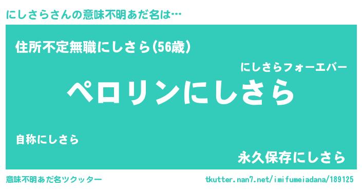 | ポケモン風あだ名 | 『ニシチュウ』『メロニッシ』 |