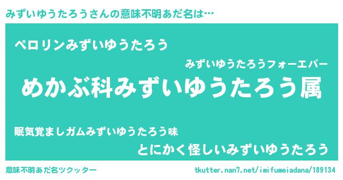 | 男性向けラノベタイトル風あだ名 | 『ミズイユウタロウスレイヤー』 |