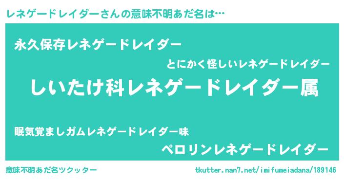| 男性向けラノベタイトル風あだ名 | 『レネゲードレイダースレイヤー』 |