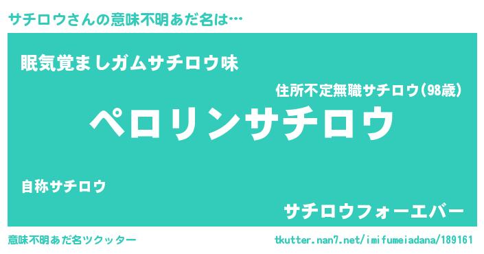 | ヒーロー風カッコイイあだ名 | 『スーパーサチロウ』『愛の使者サチロウ』 |
