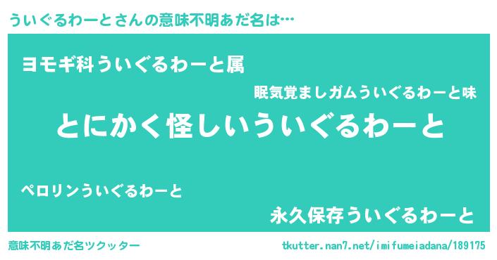 | 欧米人風あだ名 | 『ウサインういぐるわーと』 |