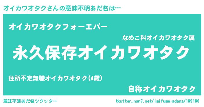 | 女子向けラノベタイトル風あだ名 | 『異世界で失敗しない100のオイカワオタク』 |