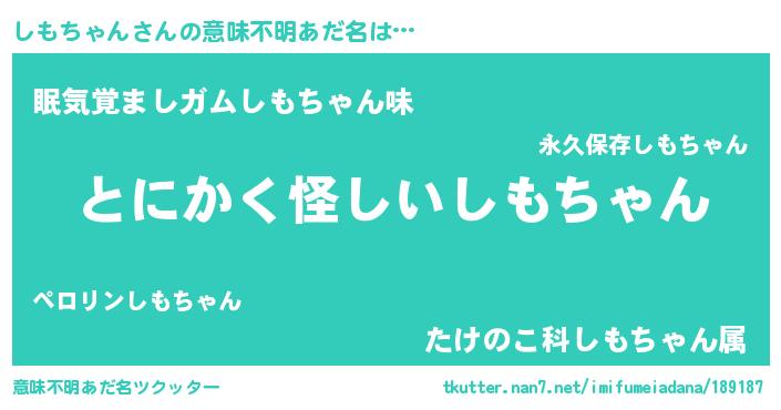 | ヒーロー風カッコイイあだ名 | 『炎刃騎士シモ』『愛の使者しもちゃん』 |