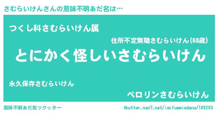 | ポケモン風あだ名 | 『ヒサムライケン』『メロサッム』 |