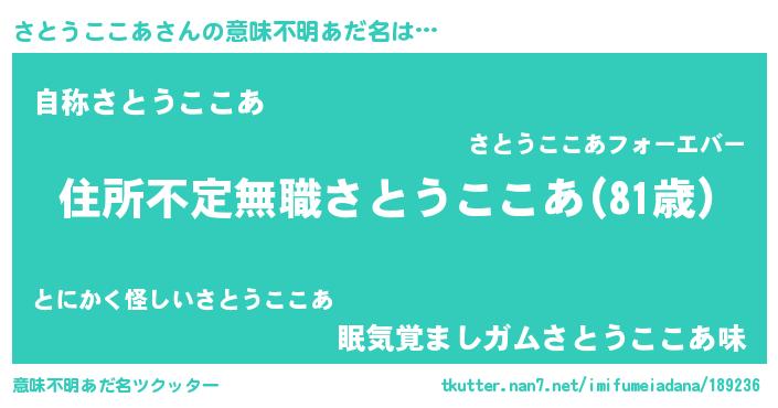 | 料理風あだ名 | 『さとうここあのカルパッチョ風』 |